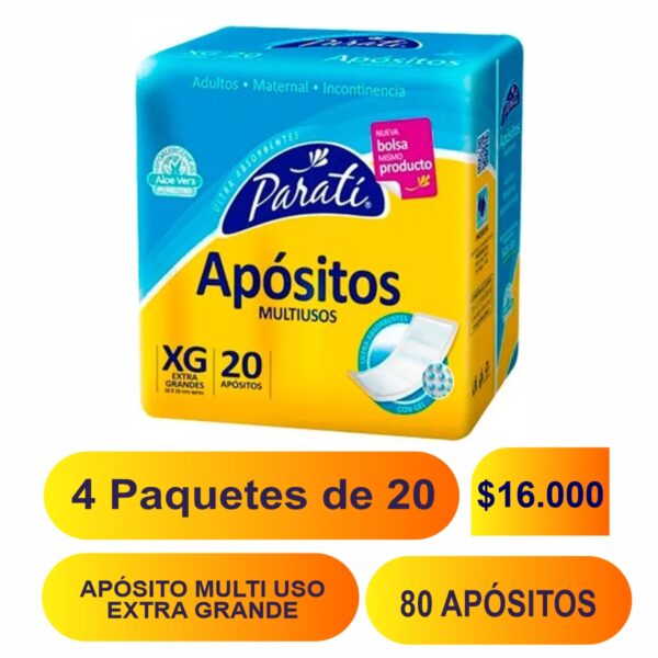 Apósitos Paratí Multiusos, Adulto, Maternal o Incontinencia. Ultra Absorbentes Talla XG, 45,5 x 16,5 cm. Con gel y aloe vera, tela suave que evita daños a la piel, brindando confort y seguridad