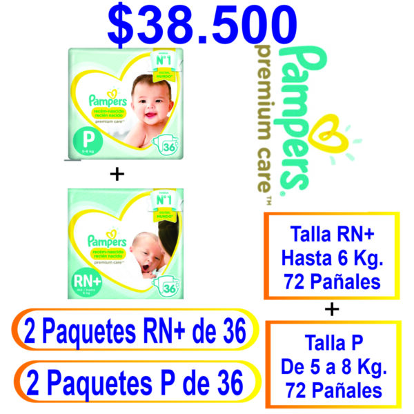 Pack 2 Paquetes (72 pañales ) RN+ más 2 Paquetes (72 pañales ) P